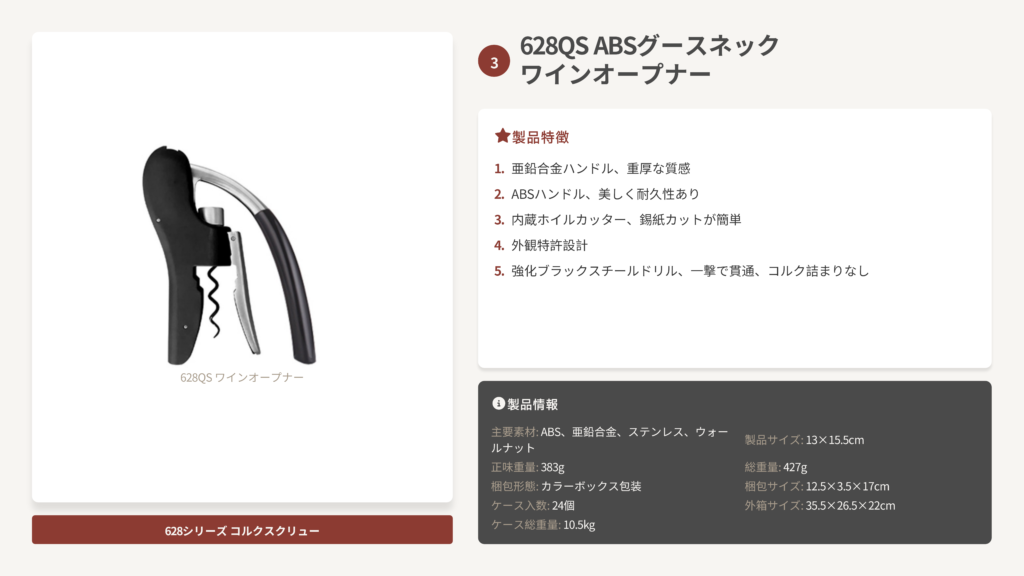 628QS ABSハンドル グースネック栓抜き