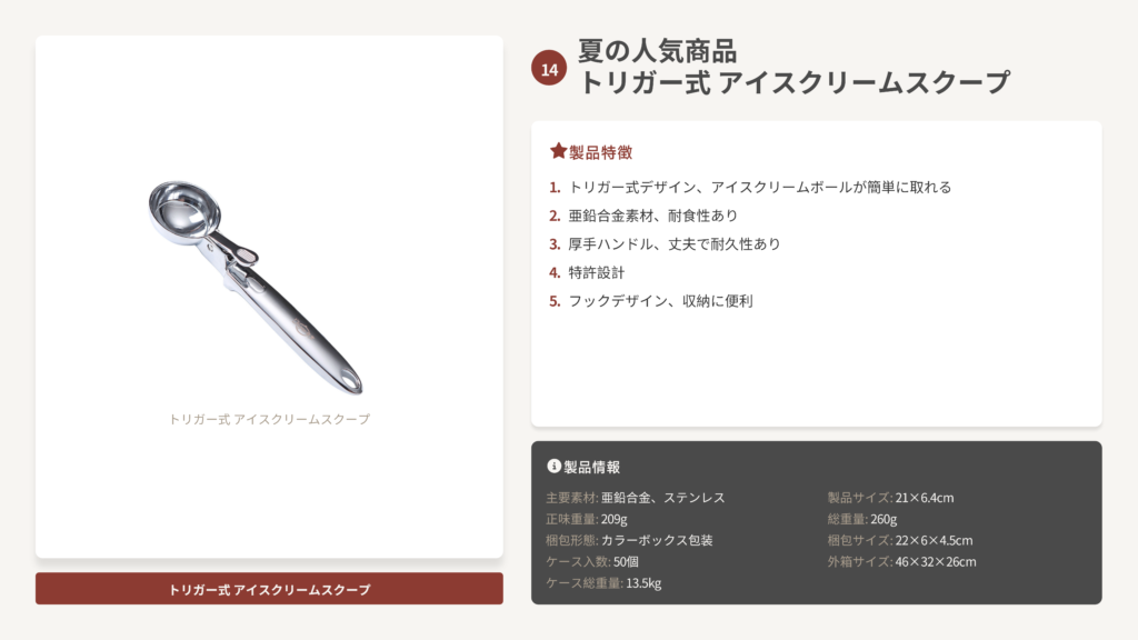 夏の人気商品 – トリガー式アイスクリームスクープ